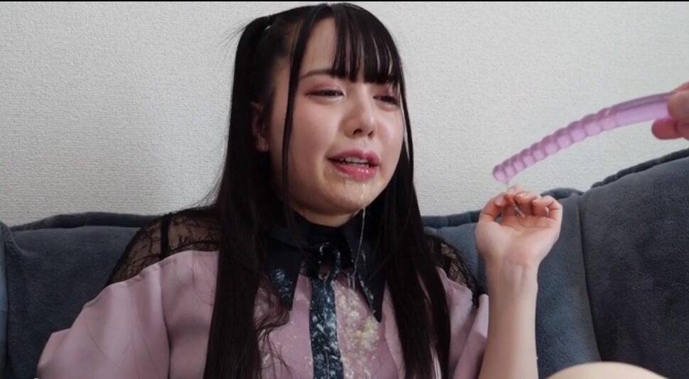 黒いレースとピンク生地の地雷系ワンピースを着用した女性にゴリゴリとイラマチオ。よだれやゲロを垂れ流してお洋服がどんどん汚れていきます。。