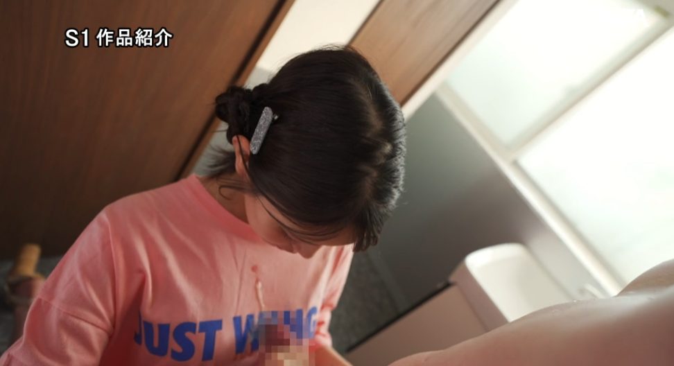 ピンク色のTシャツ姿の倉木華ちゃんが上目遣いで胸元で手コキをしてくれてそのままTシャツにぶっかけさせてくれます これからライブに行くのに!って言いながら汚れたTシャツを見せつけてきます こうゆうシチュエーションいいですね。